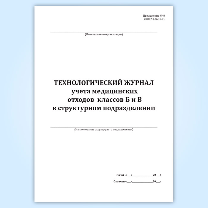 Технологический журнал учета медицинских отходов классов Б и В в структурном подразделении в Нижнекамске купить