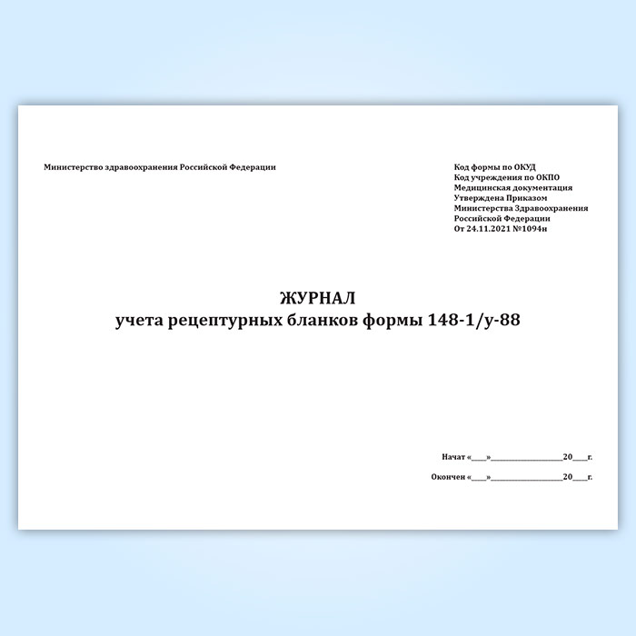 Журнал учета рецептурных бланков формы 148-1/у-88 (новый) (Приказ Минздрава России от 24.11.2021 N 1094н) в Нижнекамске купить