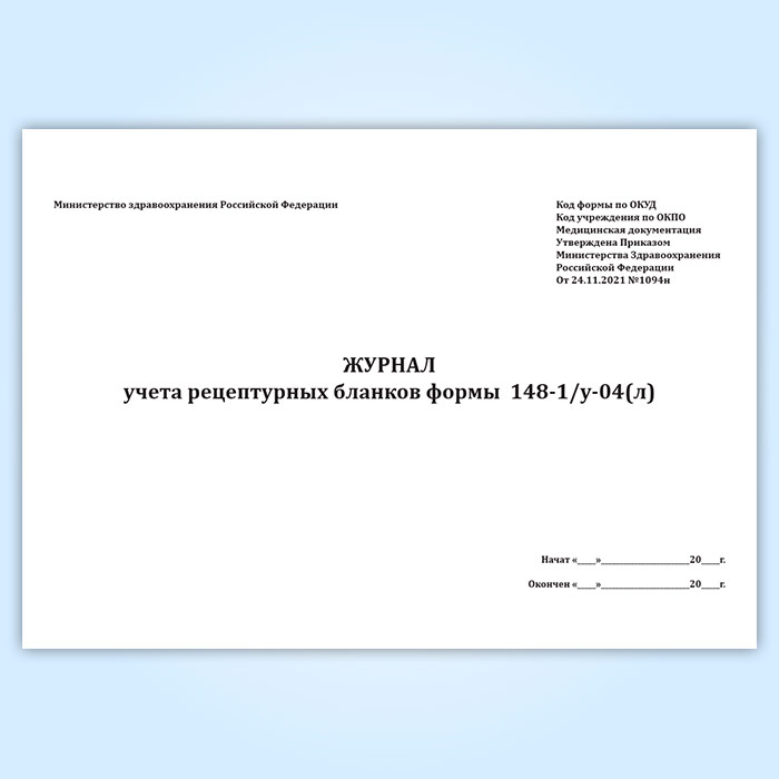 Журнал учета рецептурных бланков формы 148-1/у-04(л) (новый) (Приказ Минздрава России от 24.11.2021 N 1094н) в Нижнекамске купить