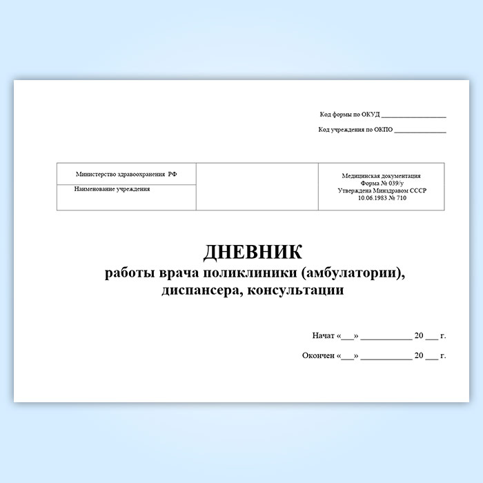 Дневник работы врача поликлиники (амбулатории), диспансера, консультации (форма 039/у) в Нижнекамске купить
