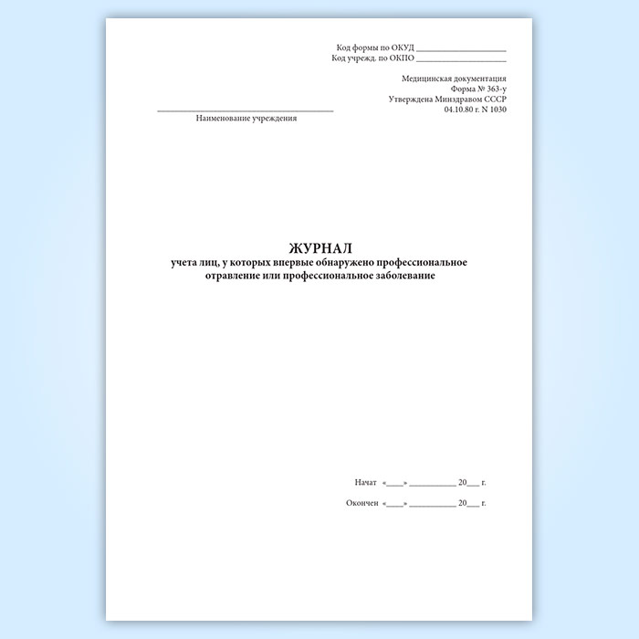 Журнал учета лиц, у которых впервые обнаружено профессиональное отравление или профессиональное заболевание (форма 363-у) в Нижнекамске купить