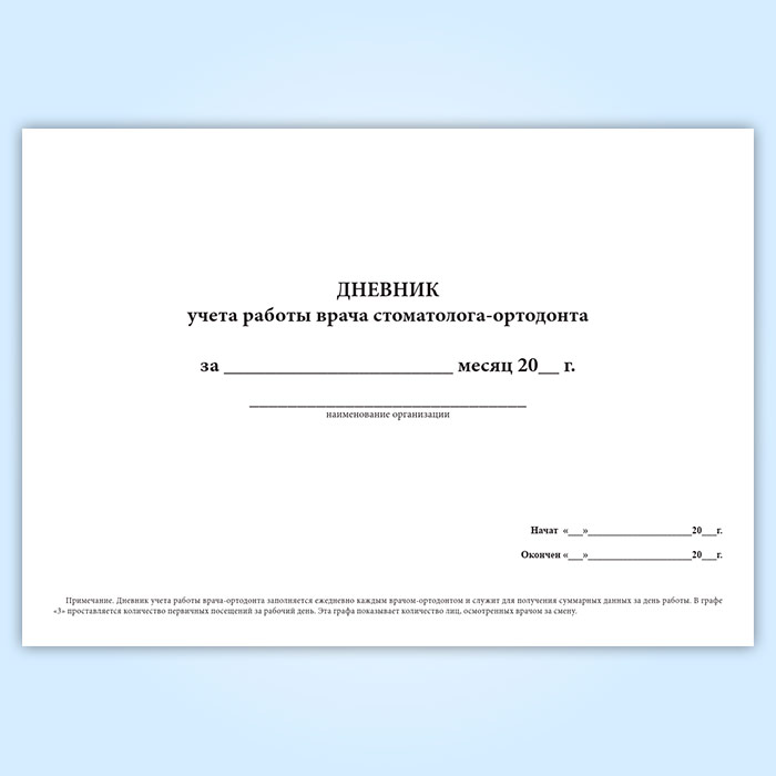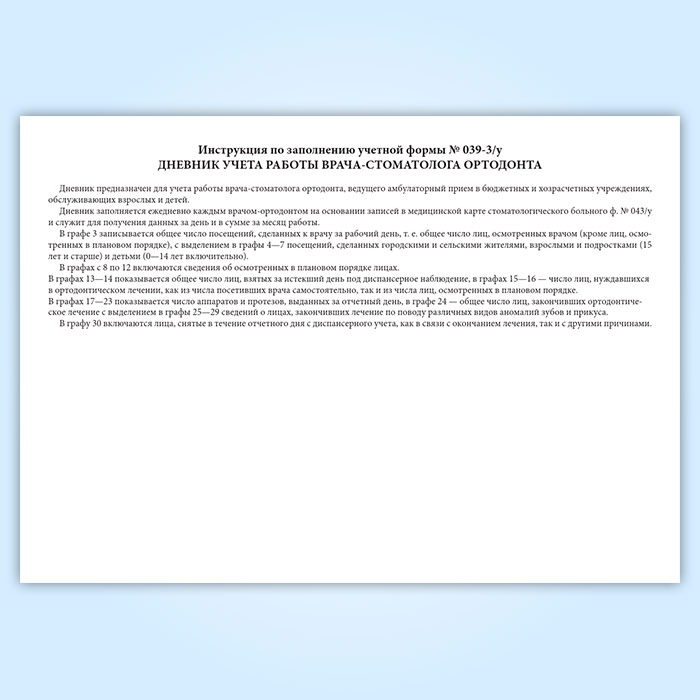 Дневник учета работы врача стоматолога-ортодонта (форма 039-3у) в Нижнекамске купить