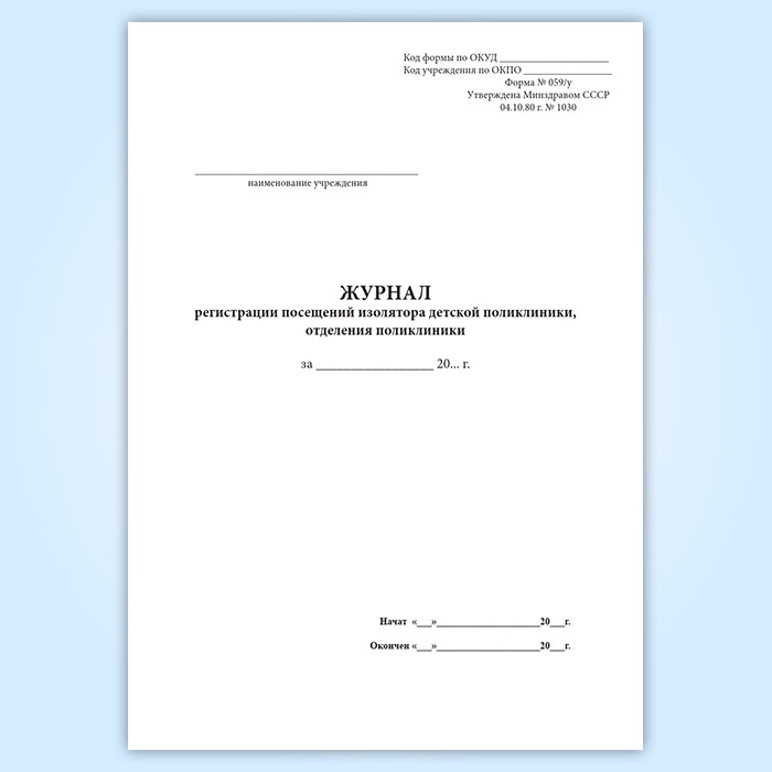Журнал регистрации посещений изолятора детской поликлиники, отделения поликлиники (форма 059/У) в Нижнекамске купить