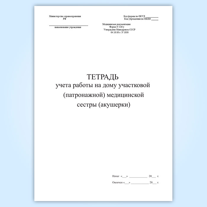 Тетрадь учета работы на дому участковой (патронажной) медицинской сестры (акушерки) (форма 116/у) в Нижнекамске купить
