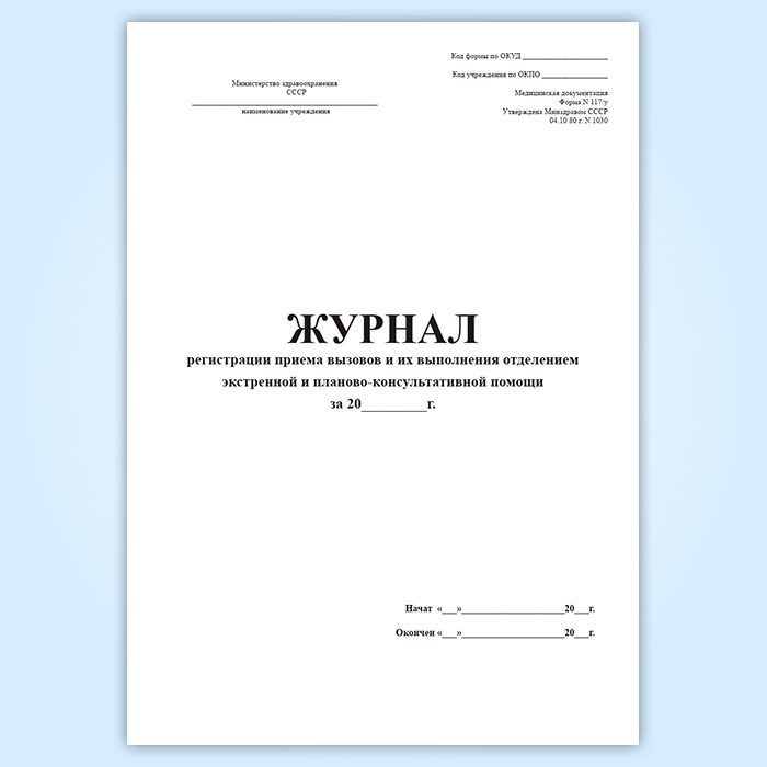 Журнал регистрации приема вызовов и их выполнения отделением экстренной и планово-консультативной помощи (форма 117/у) в Нижнекамске купить