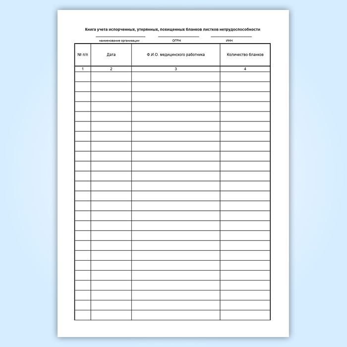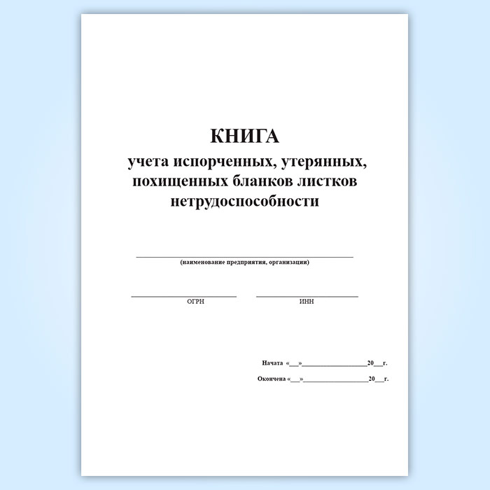 Книга учета испорченных, утерянных, похищенных бланков листков нетрудоспособности в Нижнекамске купить