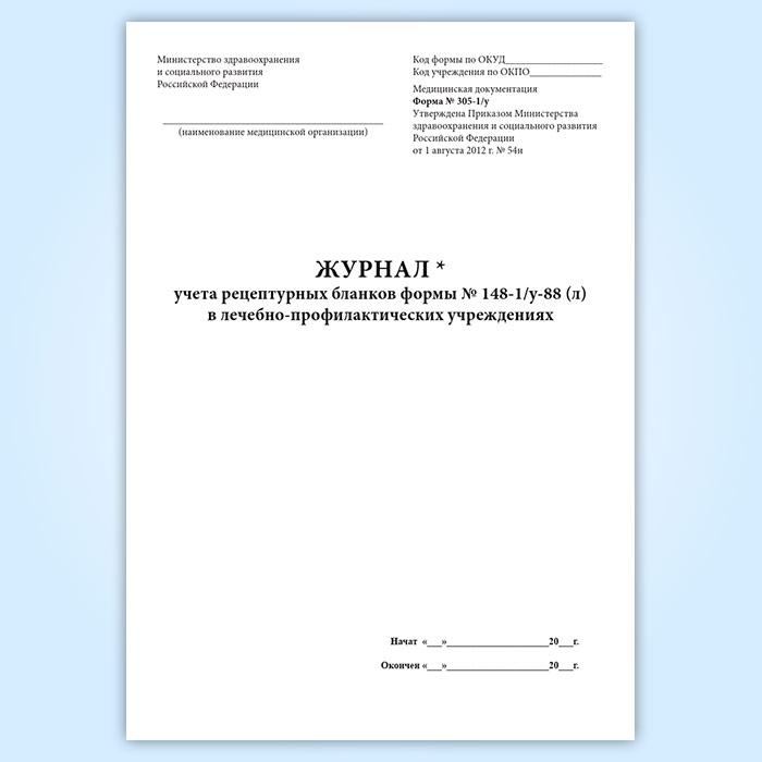 Журнал учета рецептурных бланков формы № 148-1/у-88 (л) в лечебно-профилактических учреждениях форма 305/у-1 в Нижнекамске купить
