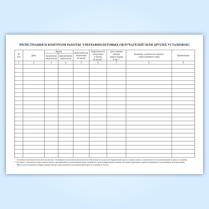 Журнал учета работы ультрафиолетовых облучателей (или других установок) (обсерватор) в Нижнекамске купить