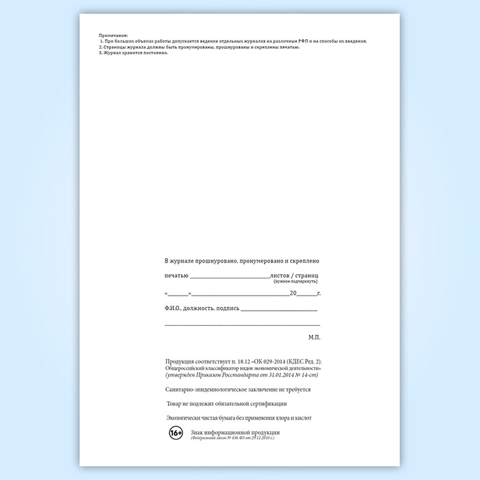 Вы получаете печатную продукцию прошнурованной и c местом для вашей печати в соответствии с действующими нормативными документами: