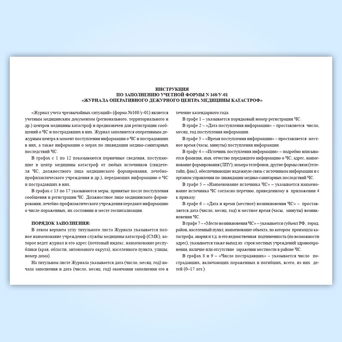 Журнал оперативного дежурного центра медицины катастроф (форма 168/у-01) в Нижнекамске купить