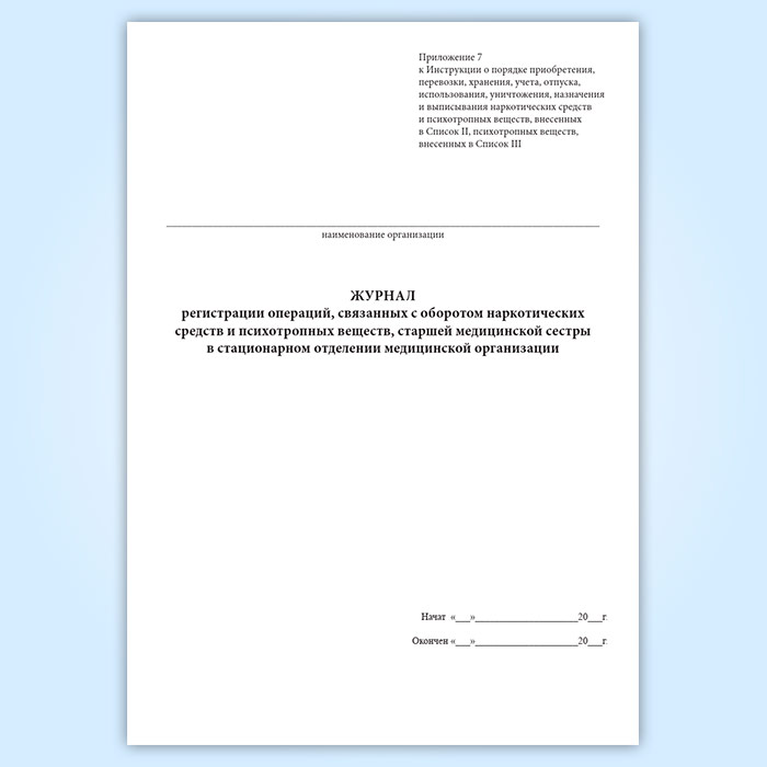 Журнал регистрации операций, связанных с оборотом наркотических средств и психотропных веществ старшей медицинской сестры в стационарном отделении медицинской организации в Нижнекамске купить