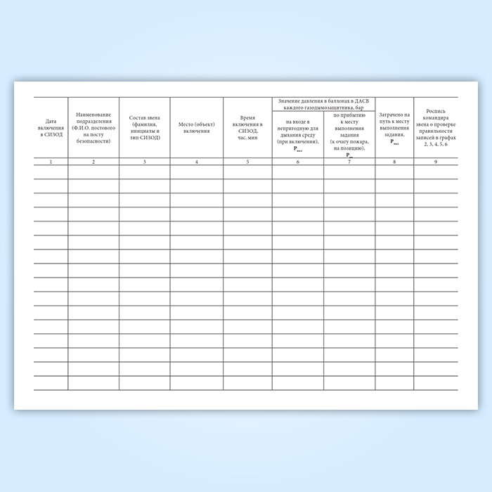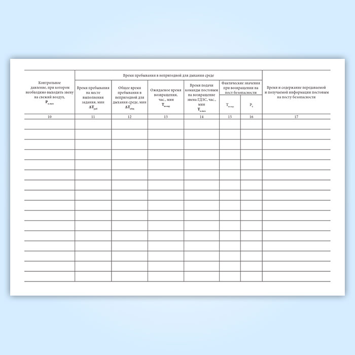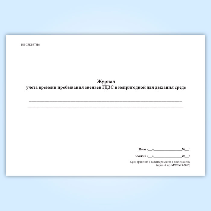 Журнал учета времени пребывания звеньев ГДЗС в непригодной для дыхания среде в Нижнекамске купить
