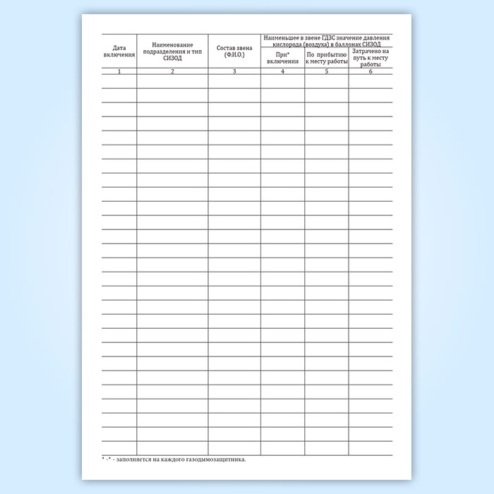 Журнал учета работающих звеньев газодымозащитной службе (ГДЗС) в Нижнекамске купить