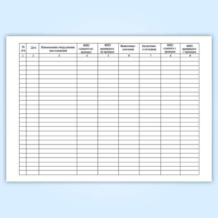 Журнал регистрации сдачи и выдачи оборудования и средств технического оснащения НАСФ на проверку в Нижнекамске купить