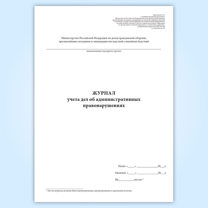 Журнал учета дел об административных правонарушениях (Приказ МЧС России от 14.06.2016 № 323) в Нижнекамске купить