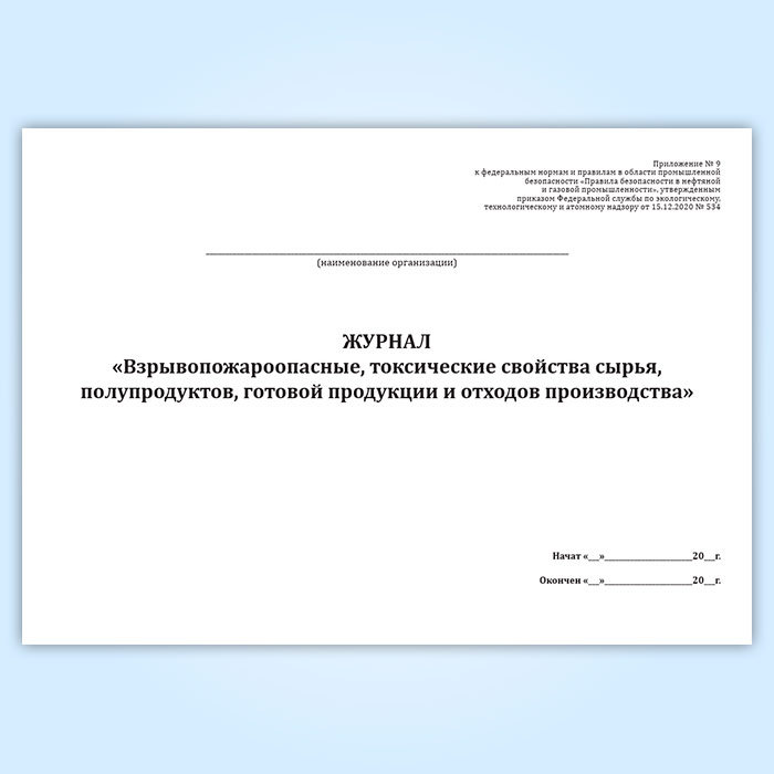 Журнал «Взрывопожароопасные, токсические свойства сырья, полупродуктов, готовой продукции и отходов производства» в Нижнекамске купить