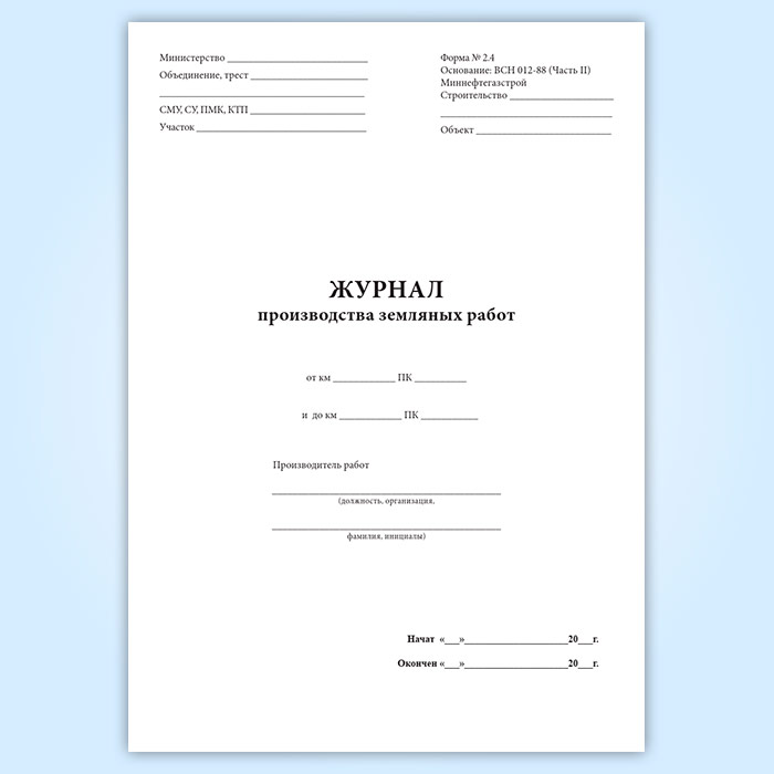 Журнал производства земляных работ (форма 2.4) (трубопроводы) в Нижнекамске купить