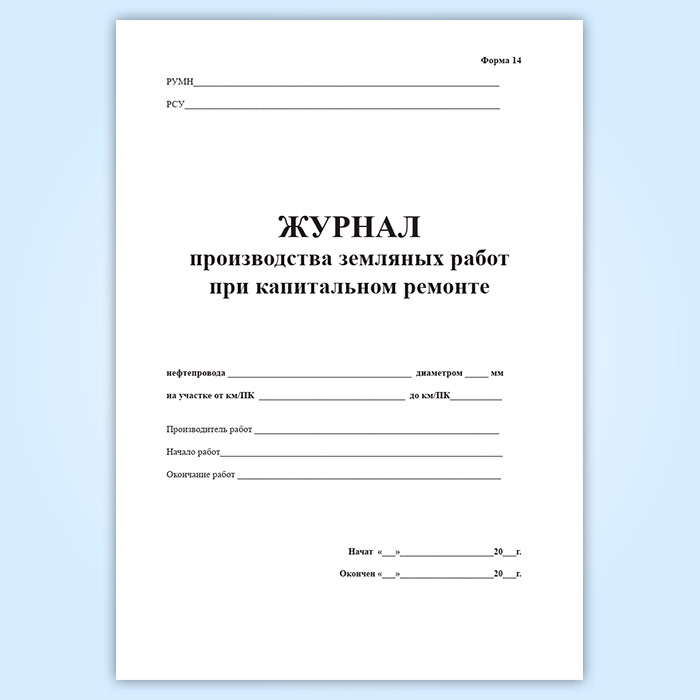 Журнал производства земляных работ при капитальном ремонте (форма 14) в Нижнекамске купить