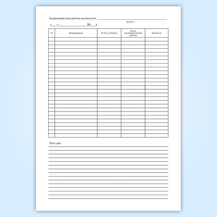 Ежедневный план работы воспитателя в Нижнекамске купить