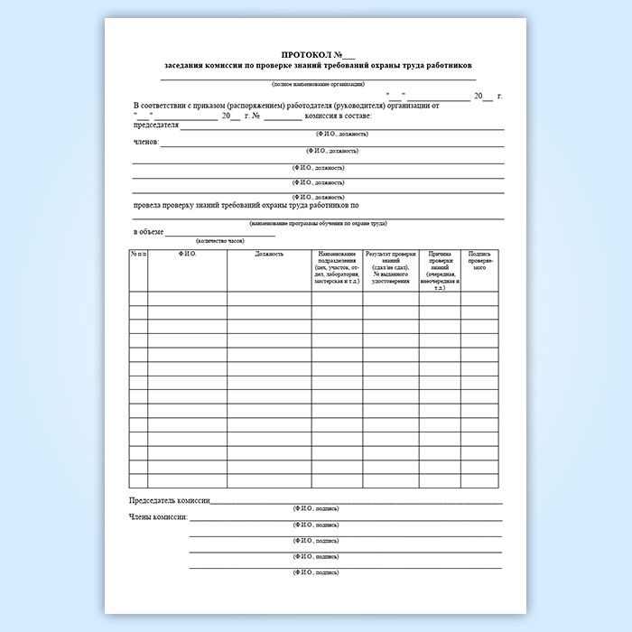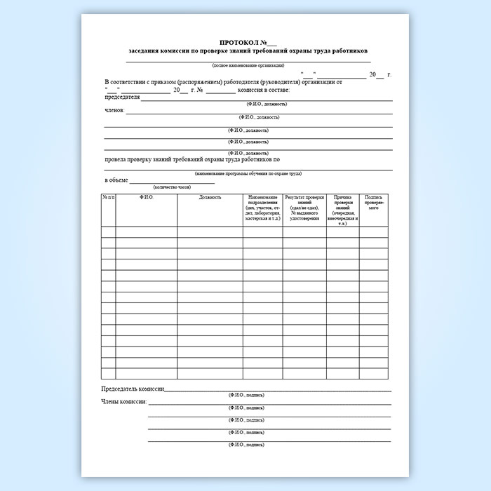 Журнал (протокол) проверки знаний правил охраны труда в Нижнекамске купить