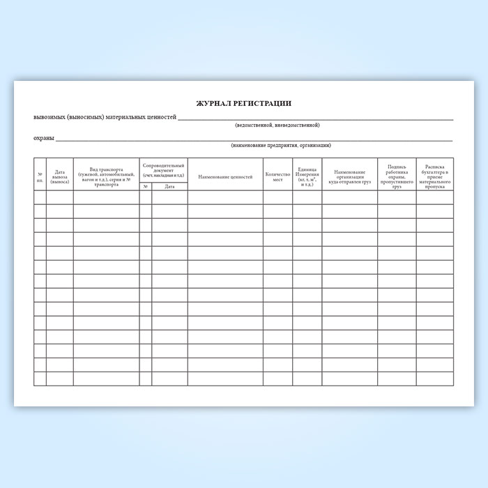 Журнал регистрации вывозимых (выносимых) материальных ценностей в Нижнекамске купить