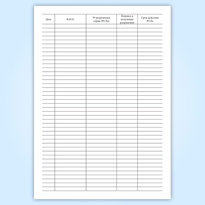 Журнал регистрации и выдачи поступающих разрешений на хранение и ношение огнестрельного оружия (РСЛа) в Нижнекамске купить
