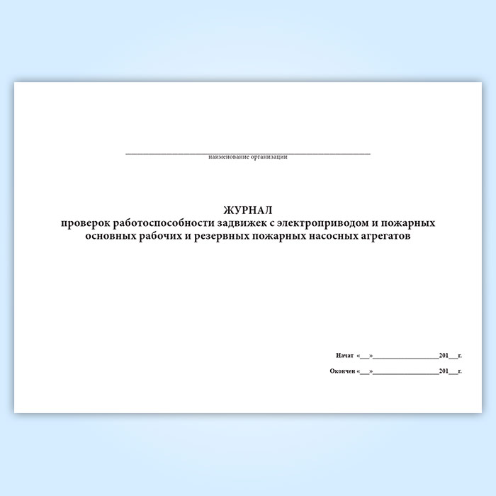 Журнал проверок работоспособности задвижек с электроприводом и пожарных основных рабочих и резервных пожарных насосных агрегатов в Нижнекамске купить