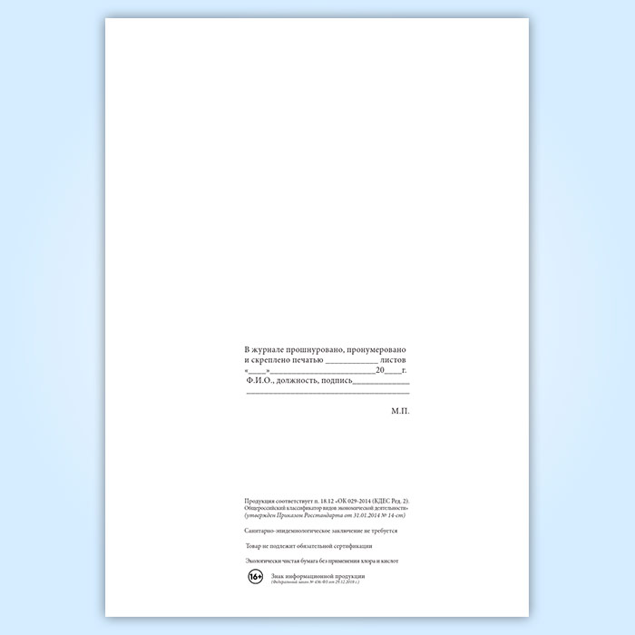 Вы получаете печатную продукцию прошнурованной и c местом для вашей печати в соответствии с действующими нормативными документами: