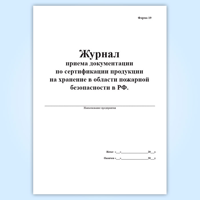 Журнал приема документации по сертификации продукции на хранение в области пожарной безопасности в РФ (форма 19) в Нижнекамске купить