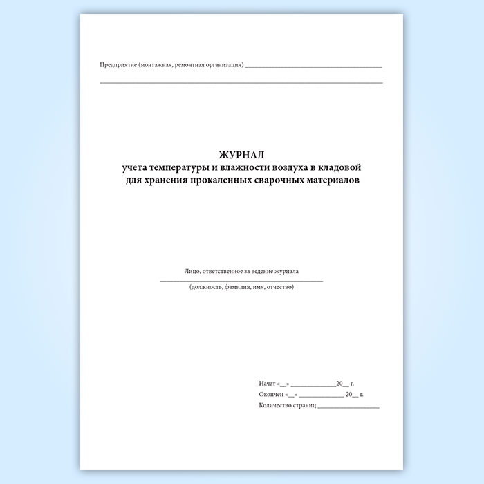Журнал учета температуры и влажности воздуха в кладовой для хранения прокаленных сварочных материалов в Нижнекамске купить