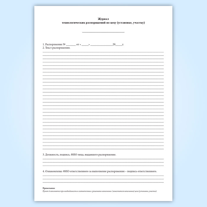 Журнал технологических распоряжений по цеху (установке, участку) в Нижнекамске купить