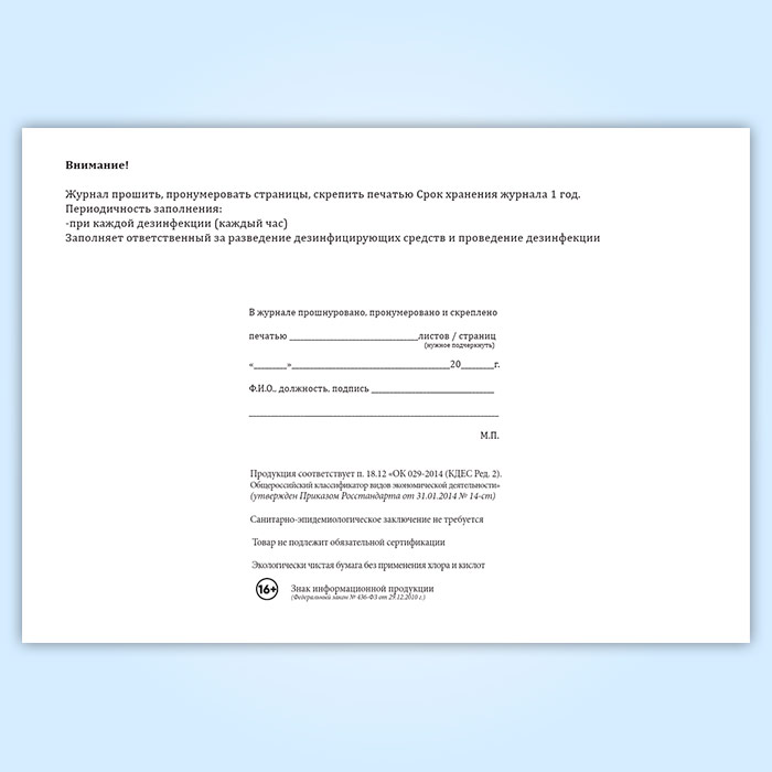 Журнал учета дезинфекций поверхностей в рамках профилактики распространения коронавирусной инфекции COVID-19 в Нижнекамске купить