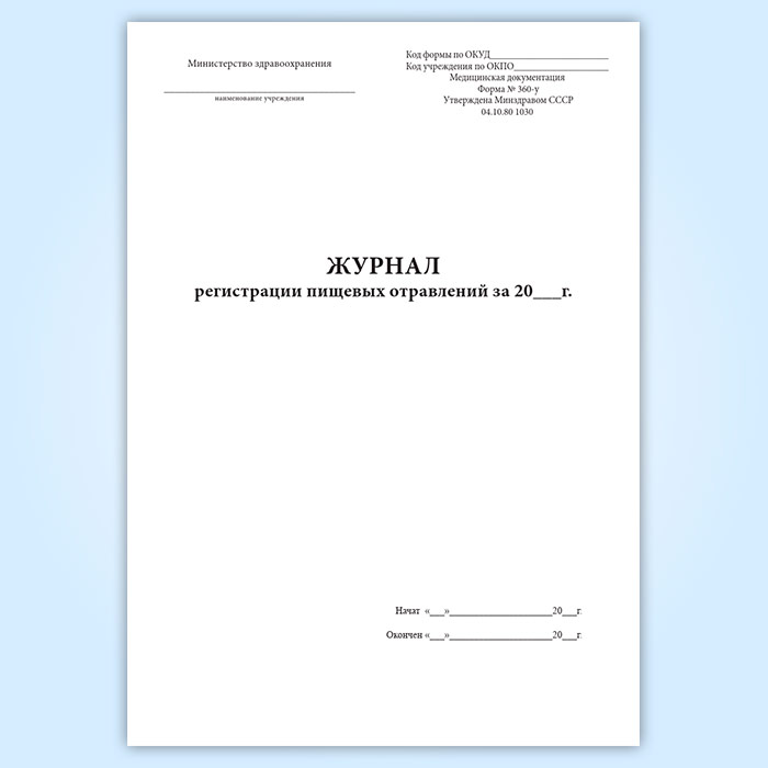 Журнал регистрации пищевых отравлений за год (форма 360/у) в Нижнекамске купить