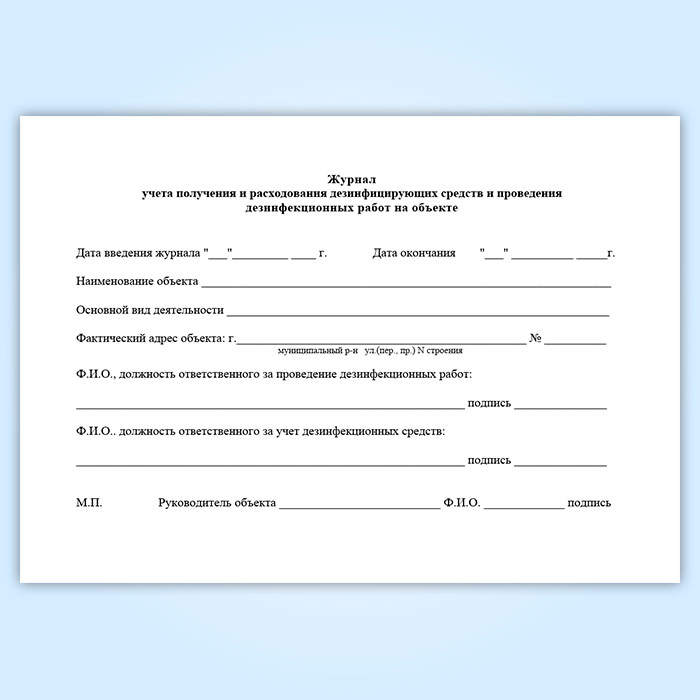 Журнал учета получения и расходования дезинфицирующих средств и проведения дезинфекционных работ на объекте в Нижнекамске купить