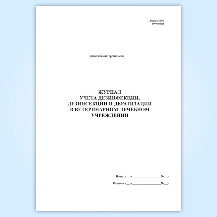 Журнал учета дезинфекции ветеринарного лечебного подразделения (форма № 006 вн.) в Нижнекамске купить