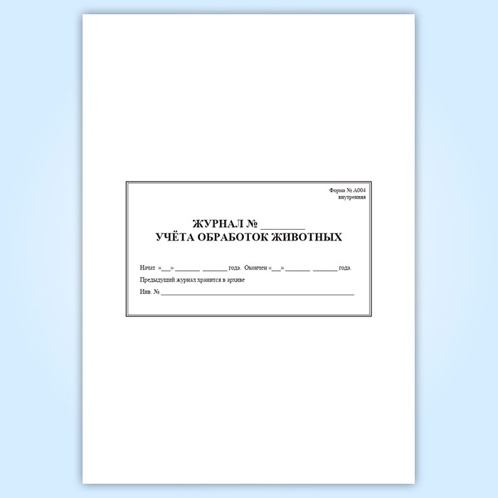 Журнал обработки животных (форма А 004) в Нижнекамске купить