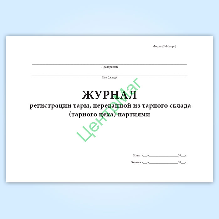 Журнал регистрации тары, переданной из тарного склада (тарного цеха) партиями (форма № П-4 тара) в Нижнекамске купить