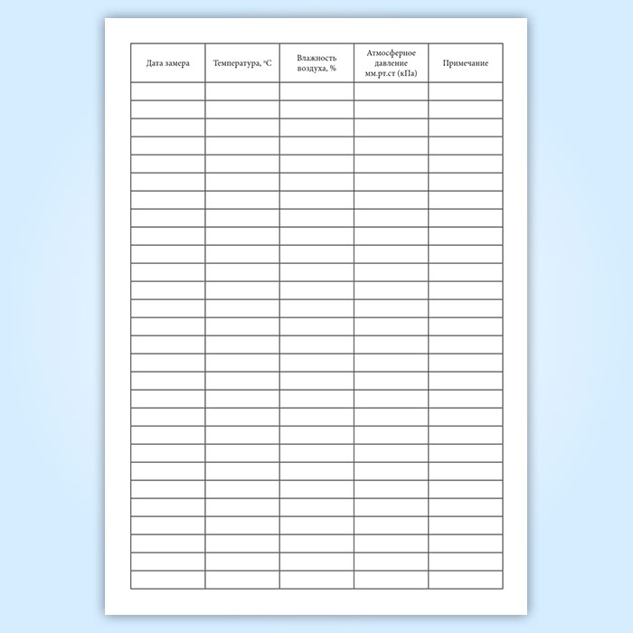 Журнал регистрации температуры, влажности, атмосферного давления в Нижнекамске купить