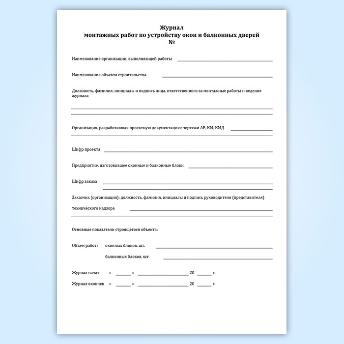 Журнал монтажных работ по устройству окон и балконных дверей в Нижнекамске купить