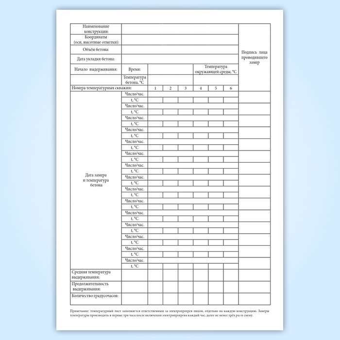 Журнал регистрации температуры бетона в монолитных конструкциях в Нижнекамске купить
