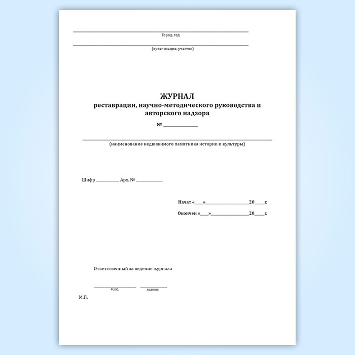 Журнал реставрации, научно-методического руководства и авторского надзора в Нижнекамске купить
