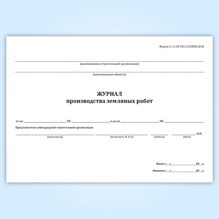 Журнал производства земляных работ (форма 5.1) в Нижнекамске купить