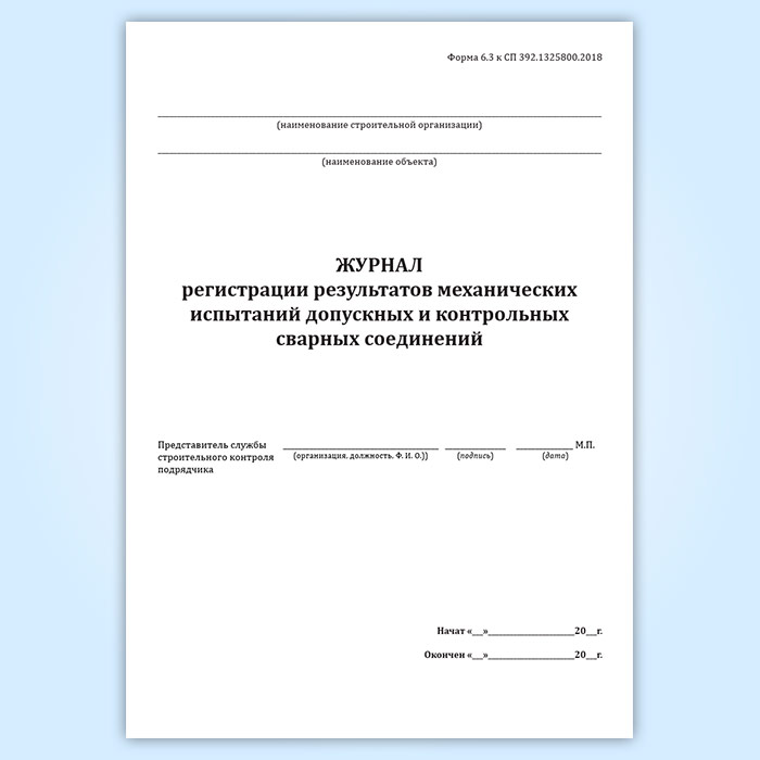 Журнал регистрации результатов механических испытаний допускных и контрольных сварных соединений (форма 6.3) в Нижнекамске купить