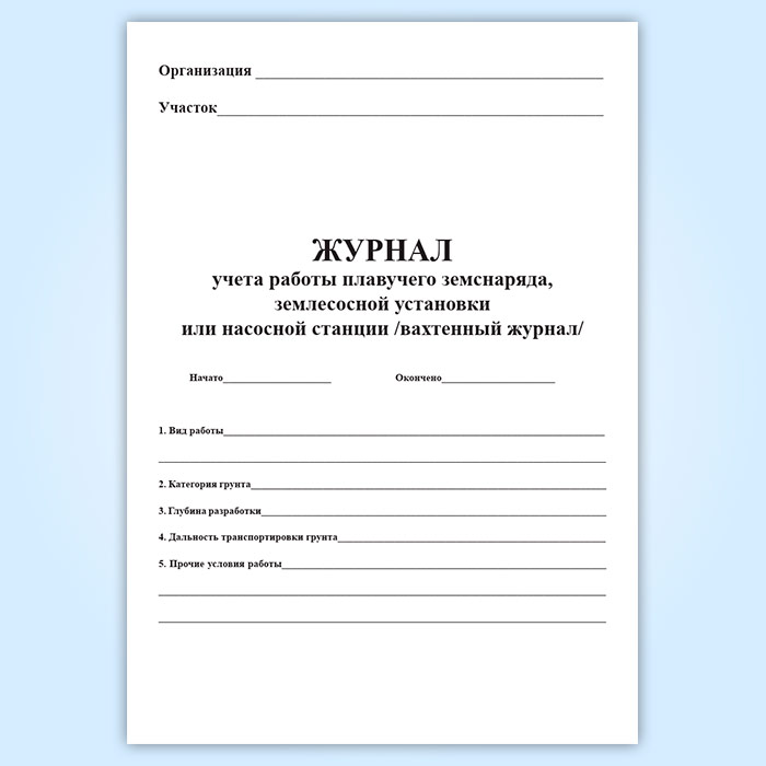 Журнал учета работы плавучего земснаряда, землесосной установки или насосной станции (вахтенный журнал) (форма ПД-3) в Нижнекамске купить