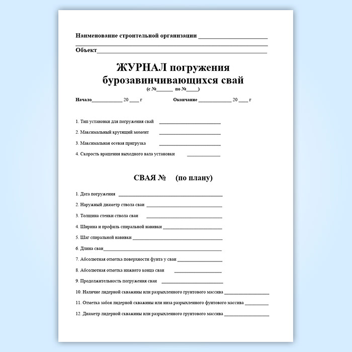 Журнал погружения бурозавинчивающихся свай в Нижнекамске купить