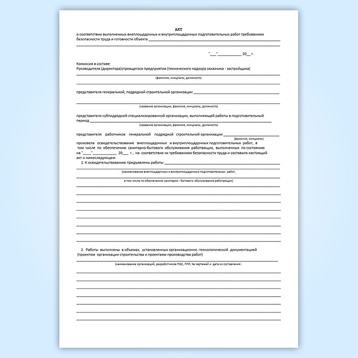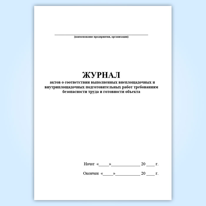 Журнал актов о соответствии выполненных внеплощадочных и внутриплощадочных подготовительных работ требованиям безопасности труда и готовности объекта в Нижнекамске купить