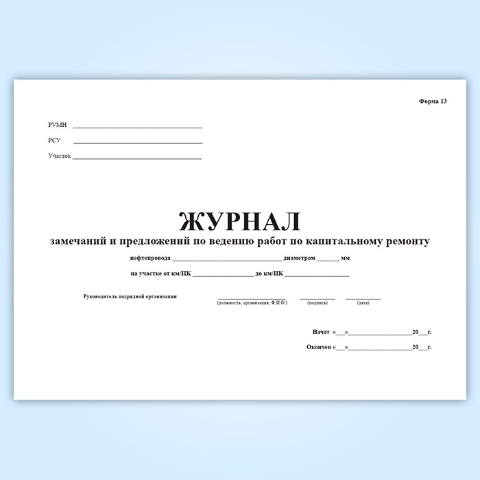 Журнал замечаний и предложений по ведению работ по капитальному ремонту в Нижнекамске купить