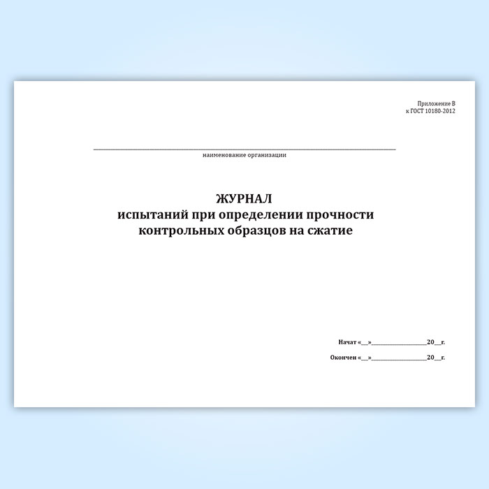 Журнал испытаний при определении прочности контрольных образцов на сжатие в Нижнекамске купить