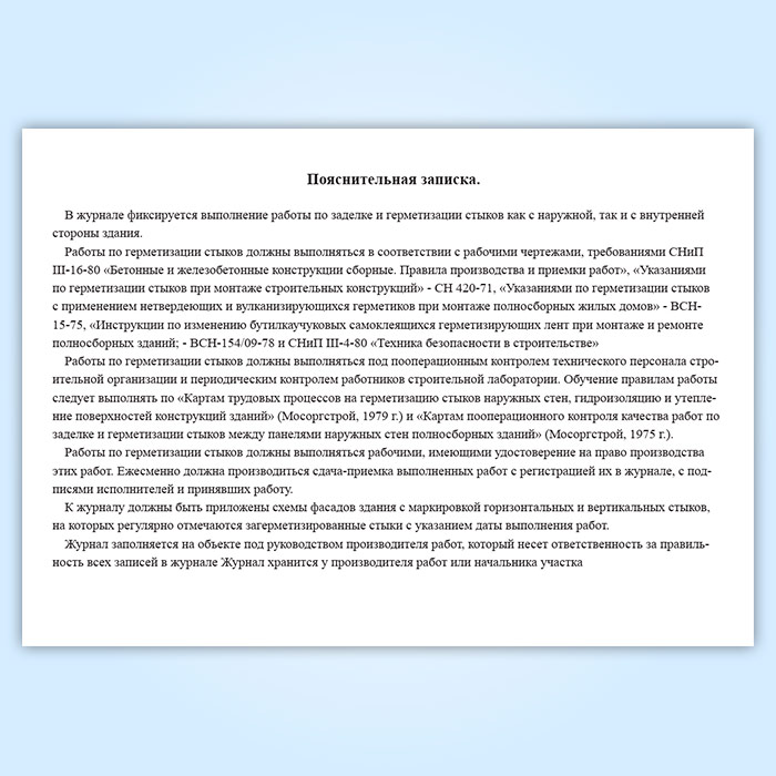 Журнал контроля качества производства работ по заделке и герметизации стыков полносборных зданий в Нижнекамске купить