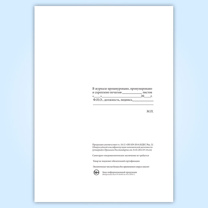 Вы получаете печатную продукцию прошнурованной и c местом для вашей печати в соответствии с действующими нормативными документами: